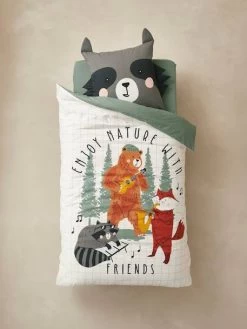 Parure Housse De Couette + Taie D’oreiller Enfant En Coton Bio* NATURE SAUVAGE Bleu – Vertbaudet