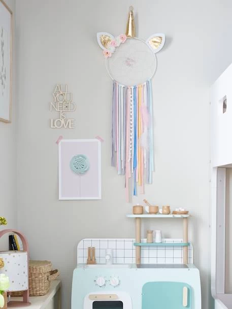 Licorne féérique et attrape-rêves fantastiques, 2 légendes réunies pour protéger les enfants des mauvais rêves ! Accrochez près du lit, cet attrape-rêves rassure les enfants et décore la chambre avec poésie.