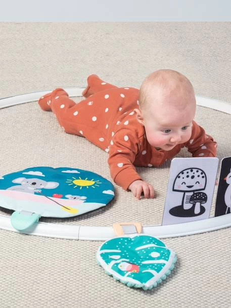 Facile Ă assembler, ce cerceau d’activitĂ©s Koala dĂ©limite un espace de jeu de 90cm qui encourage les mouvements de votre bĂ©bĂ©. Il dĂ©couvre Ă son rythme 3 zones d’activitĂ©s qui correspondent Ă 3 phases de son dĂ©veloppement. Une première zone est composĂ©e d’un miroir en arc-en-ciel incassable et de 4 cartes en tissu de formes contrastĂ©es qui mettent ses sens en Ă©veil. La seconde zone lui propose un hochet en forme d’escargot avec un anneau de dentition, un koala couineur, des oreilles moelleuses bruissantes, deux cartes colorĂ©es et un hochet avec des petites billes colorĂ©es et des rubans. La troisième zone continue Ă dĂ©velopper sa motricitĂ© avec un koala bruissant et une feuille texturĂ©e remplie de perles.