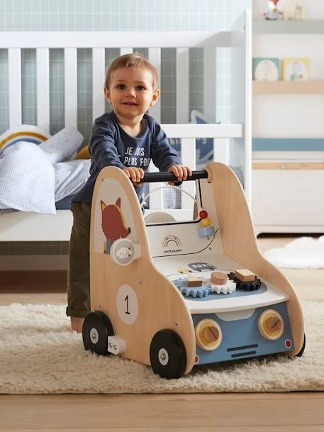 Au volant de son joli trotteur, votre enfant s’Ă©lancera pour la grande aventure de la marche ! Avec son système de freins, il est parfaitement sĂ©curisĂ© ! Vous pouvez laisser cavaler bĂ©bĂ© en toute sĂ©rĂ©nitĂ©. DotĂ© de multiples activitĂ©s, ce trotteur a tout pour plaire : un volant qui tourne avec un klaxon, des rĂ©troviseurs rĂ©tractables, un boulier , des engrenages… de quoi Ă©veiller les sens et dĂ©velopper la motricitĂ© en s’amusant ! Â