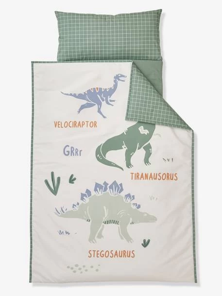 Couchage de sieste maternelle personnalisable Minili Dinos en popeline 100% coton, garnissage polyester.