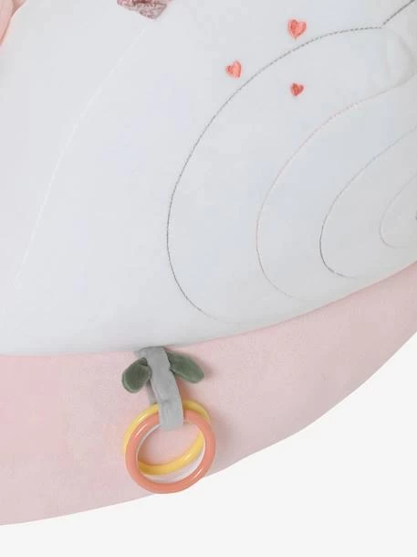 - 1 fleur vibrante, 1 coccinelle pouet-pouet, 1 lapin dans une poche attachĂ© avec un scratch, 1 anneau transparent avec billes colorĂ©es, 3 anneaux en plastique, 1 miroir, des rubans…