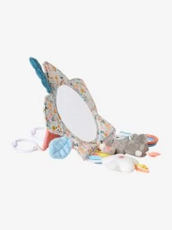 - S’attache sur une arche d’éveil, les barreaux du parc, la poussette, l’appui-tête de la voiture… grâce à ses anneaux