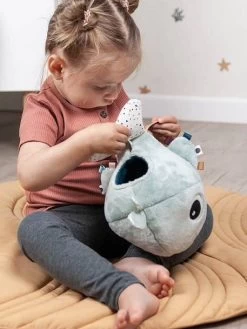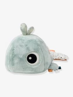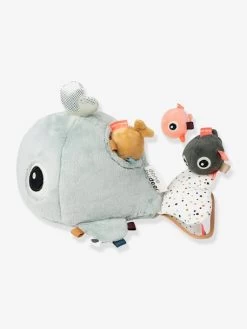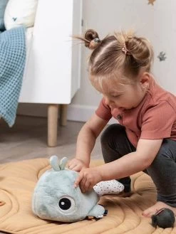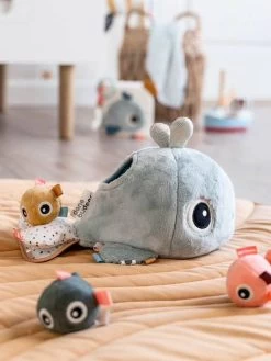 Craquez pour cette adorable baleine Wally, accompagnĂ©e de ses petits amis poissons ! La joyeuse baleine aime jouer Ă cache-cache. DĂ©couvrez comment les petits poissons se cachent Ă l’intĂ©rieur de Wally. Chaque poisson Ă©met un son diffĂ©rent : une clochette, un bruit de papier et un carillon encourageront les petits Ă ramper derrière eux. Laissez votre petit bout dĂ©couvrir les petits poissons, les diffĂ©rentes textures de la baleine ainsi que le miroir cachĂ© sur sa nageoire. Les Ă©tiquettes colorĂ©es et le jet d’eau seront Ă©galement de belles surprises ! Ce jouet d’Ă©veil va bien amuser les petits tout en dĂ©veloppant leur concentration et leur coordination Ĺ“il-main.Â