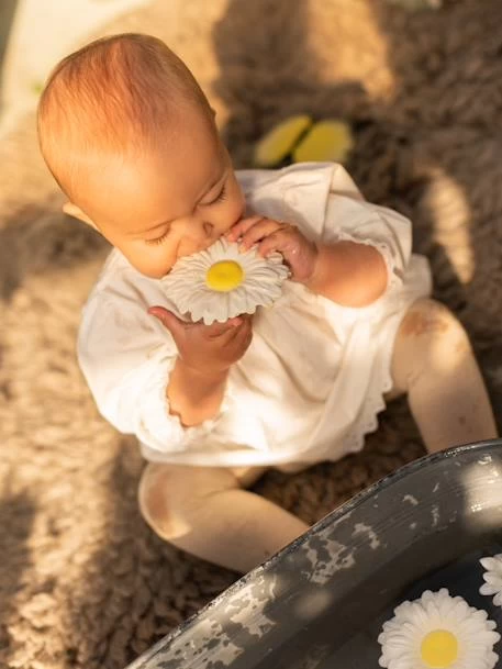 Et voici Margarita la Marguerite de Oli & Carol, un jouet de dentition en forme de jolie fleur, utilisé pour les poussées dentaires de bébé ou pour le bain. La célèbre fleur transformée en jouet à mâchouiller pour le plus grand bonheur des bébés est facile à prendre en main et soulagera leurs petites gencives.