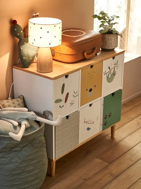 Un meuble colorĂ© et animĂ© qui raconte de belles histoires d’aventures dans la jungle ! Pratiques, ses 6 bacs vous permettent de trier les habits ou les jouets de vos enfants. Les pieds et le plateau en pin massif amènent une jolie touche contrastĂ©e pour une dĂ©co Ă la fois fun et tendance ! Â