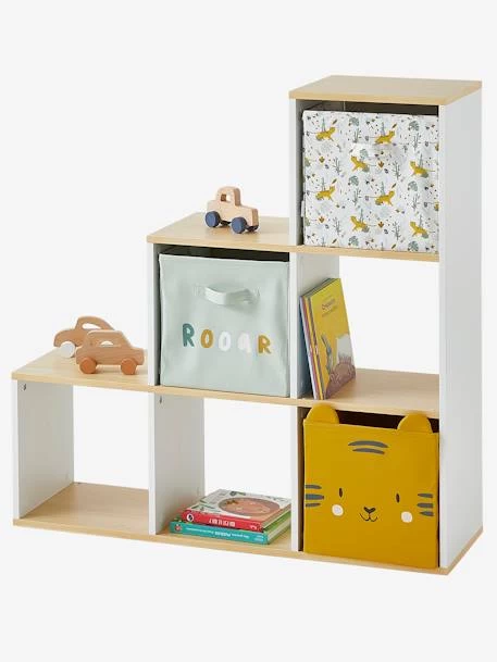 Un meuble à cases au joli design blanc/bois et dans lequel vous pourrez insérer différents bacs de rangements, en vente sur notre site !