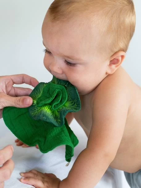 Les fruits et légumes d’Oli&Carol sont maintenant transformés en Mini Doudou pour que les tout-petits se sentent à l’aise partout où ils vont ! 2 en 1 : c’est à la fois un doudou et un anneau de dentition ! Le coeur du chou Kendall est en caoutchouc et les feuilles en mousseline de coton. Les deux parties sont amovibles ce qui permet de les laver séparément. Kendall le Kale est un mini doudou ergonomique facile à attraper, que bébé va adorer câliner et mâchouiller.