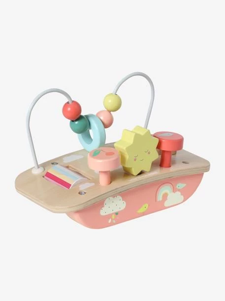 Une petite table d’activités facile à emporter partout avec bébé et sur laquelle il pourra s’éveiller avec un boulier et d’autres petites surprises à découvrir !