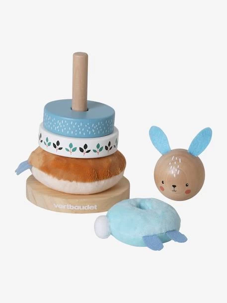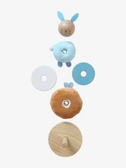 Une jolie tour à empiler composée d’éléments en bois et en tissu. Bébé pourra s’exercer à placer les différents anneaux sur la tige en bois. Une fois terminé, ce jouet posé sur une commode participera à une tendre déco de chambre.