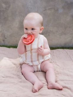 Renato la tomate est un anneau de dentition naturel parfait pour soulager les gencives douloureuses ou jouer dans le bain.