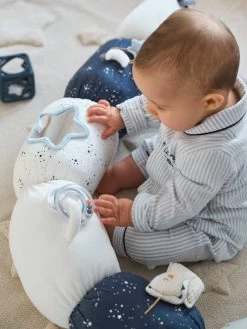Un rouleau d’activités féérique, composé d’un ours polaire et de 5 boudins d’activités. Des matières variées pour stimuler le toucher, des motifs et illustrations pour émerveiller leurs petits yeux et des activités d’éveil pour stimuler leur curiosité… le rouleau d’activités Céleste a plus d’un tour pour amuser les tout petits.