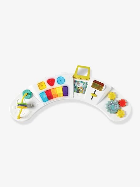 Rehausseur 3 en 1 avec plateau de jeu électronique: siège d’activités, réhausseur avec plateau et réhausseur simple. La sécurité est maximale avec le harnais 3 points et la double fixation par sangles pour utilisation sur une chaise. Le réducteur d’assise en mousse est confortable pour bébé et peut se retirer lorsqu’il grandit. Le plateau de jeu est doté d’un piano lumineux, d’un miroir, d’un jeu d’engrenages et d’un boulier. Il s’ouvre pour faire place à un petit plateau sur lequel on peut positionner une tasse ou un biberon. Utilisable dès que bébé peut se tenir en position assise.