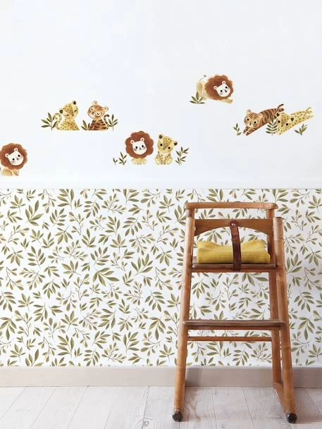 Retrouvez l’univers Felidae de Lilipinso avec ces stickers muraux aux couleurs chaudes et motifs vintages composĂ©s de lions, de tigres et de lĂ©opards au milieu du feuillage de la jungle.   Â