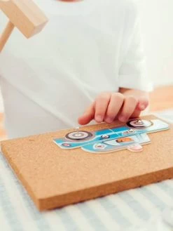 - Un matériel de qualité : planche en liège épaisse, pièces et marteau en bois.