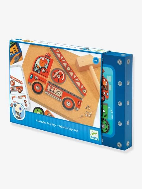 Tap tap vĂ©hicules, un classique des activitĂ©s de maternelle revisitĂ© par Djeco pour dĂ©velopper la dextĂ©ritĂ© des plus jeunes. L’enfant construit ses propres voitures et camions en plaçant les pièces sur le support en liège et en les fixant Ă l’aide des petits clous et du marteau. Il reproduit les modèles ou fait appel Ă son imagination pour crĂ©er ses propres vĂ©hicules Ă l’infini ! Le tout dans une jolie boĂ®te en bois !