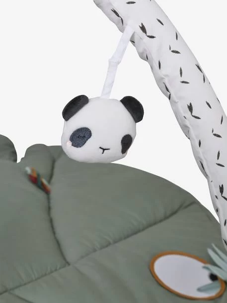 - Jouets suspendus amovibles : 1 tigre + 1 panda avec clochettes. 1 ananas en velours crissant