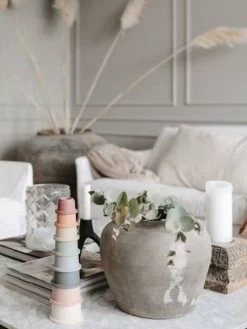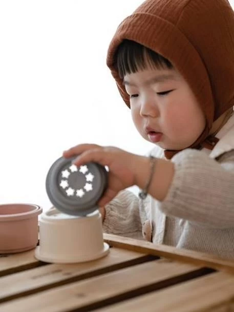 Les gobelets à empiler sont inspirés de la tour « Rundetårn » à Copenhague, au Danemark, et le jouet fait partie de la collection Hygge danoise de jouets pour les enfants de 0 à 3 ans.