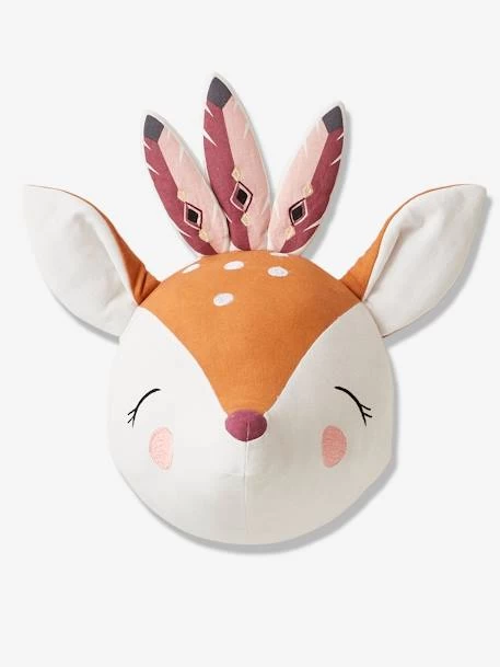 Danse de la poĂ©sie autour de ce joli trophĂ©e ! Une biche Sioux coiffĂ©e de plumes roses, Ă accrocher au mur pour un dĂ©cor narratif, tout doux !Â